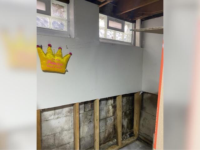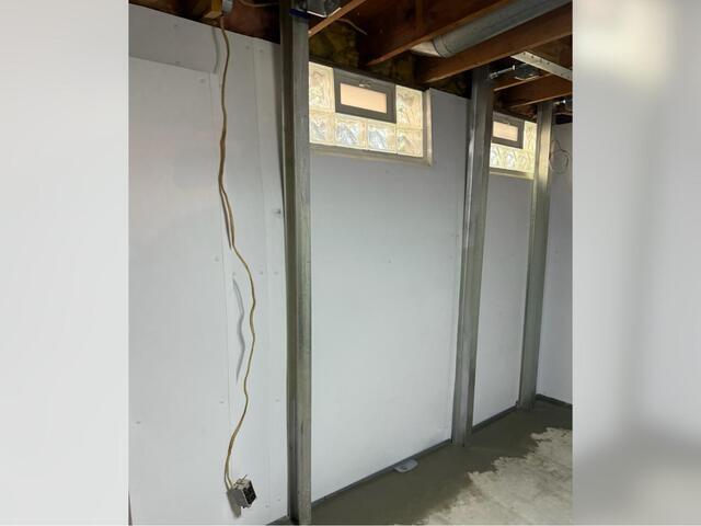 This basement in Milford, OH, had a very musty smell, which led the homeowners to give us a call to locate the cause of the must. Our Inspector, Steve, used his nose and his wits to find the spot in the drywall that was leaking bad. After Steve opened up the drywall, he found mold, rot, and worst of all, signs of bowing wall movement. Steve suggested we repair this wall by tearing out the moldy drywall and studs, waterproof the wall with our WaterGuard subfloor drains, stabilize the wall with our PowerBrace steel beam system, and refinish the look with our moisture proof BriteWall panels! This foundation is now dry, safe, and secured. Click here to read what the customer had to say about our crew.