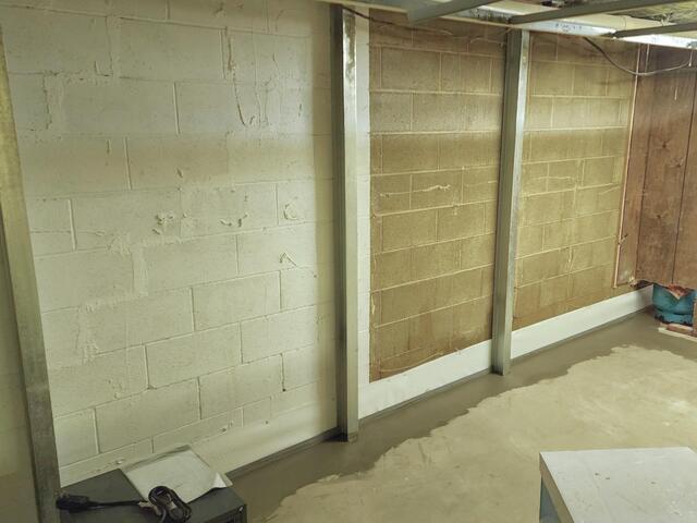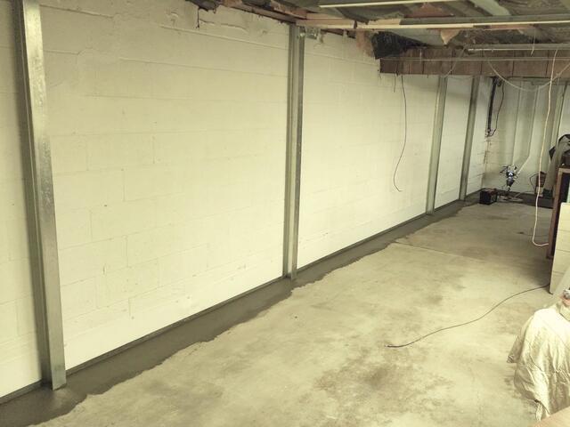 This basement in Ansonia, OH, was going through an assortment of problems, all due to hydrostatic pressure that had built up around the foundation. The first and most important issue at hand were some bowing walls. The secondary issue was moisture and leaks. We tackled both problems head on by installing a wall bracing system and a basement waterproofing system. Our PowerBraces were used to brace the wall, and they are a patented product through the SupportWorks exclusive network. These beams are made of galvanized steel, and they are coated in zinc to prevent rusting. The bases of the beams were installed into the floor slab, and the tops of them were secured to the floor joist system with specially designed brackets. This bracing system will ensure that the walls won't move. For our waterproofing system, we fitted the coves in the basement with our subfloor WaterGuard drains. We then installed a TripleSafe sump pump in the corner of the basement to discharge water. Lastly, we installed a SaniDry Sedona dehumidifier to further help control moisture. The drainage system, the sump pump system, and the dehumidification system are all patented products through the Basement Systems exclusive network. The homeowner was left impressed with our crews knowledge of the products they were installing.