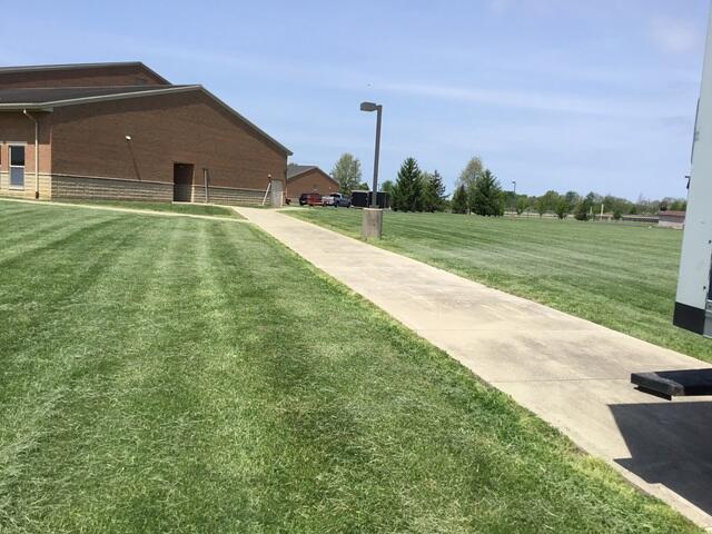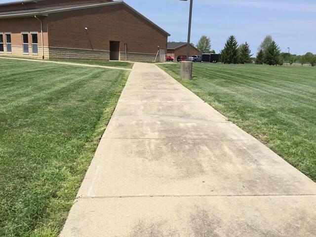 Western Brown Middle School in Mount Orab, OH contacted us after sections of their sidewalk began to settle. Six concrete slabs had dipped into soft, shifting soil, leaving uneven joints that made walking awkward and unsafe for students moving between buildings.
