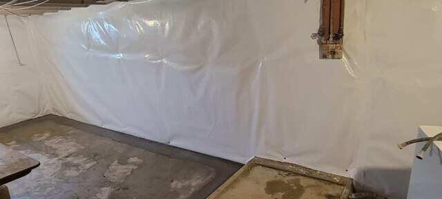 CleanSpace Liner is attached to the floor and walls of the crawl space to provide a mold and vapor proof barrier between the ground and the home. The bright white color brightens up the crawl space making it easier to see into and access when needed.