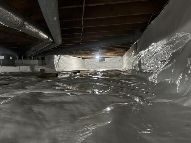To solve the problem, our team encapsulated the entire area using our CleanSpace vapor barrier system, sealing the floor and walls to block out ground moisture. We also installed a SaniDry Sedona dehumidifier to keep humidity levels under control year-round.