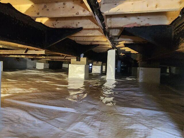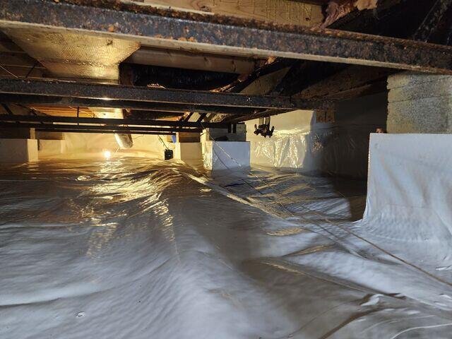 After reading about the many benefits—including reduced humidity, lower energy bills, added storage space, and protection from pests—they reached out to schedule an inspection. Once on site, our team cleaned out the crawl space, sealed off all outside air vents, and installed a heavy-duty vapor barrier along the floor and walls. We also added a dehumidifier to help maintain a dry, stable environment year-round.