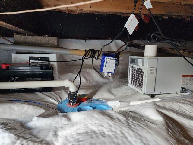 This shallow, small crawl space had some moisture control issues so we encapsulated it with our CleanSpace vapor barrier and installed our SaniDry Sedona dehumidifier to make it a conditioned environment.
