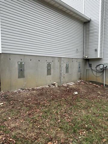 In Lawrenceburg, IN, this garage had a 6-foot exposed foundation wall on the backside that needed repairing. Over time, the back wall had started tipping outward from the top, likely due to settling backfill soil beneath the garage slab and the weight of the structure above. To stabilize the wall, our team installed anchor plates on the exposed side and screwed our helical tiebacks underneath the garage slab. This required carefully digging four holes through the slab to secure the tiebacks to stable soil below. Once completed, the system provided permanent support, preventing further outward movement and restoring the integrity of the garage foundation. It was also able to straighten the wall out immediately. The homeowner now has confidence that their wall is fully stabilized and protected.