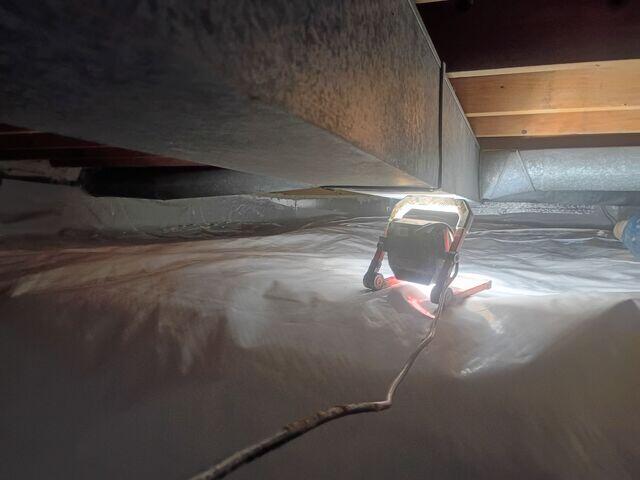 Our team started by treating the surfaces with an Anabec cleanser to eliminate any existing organic growth and ensure a clean foundation for the encapsulation. We then installed drainage matting across the floor to promote air movement beneath the liner and help control any minor seepage. Over that, we laid CleanSpace, a heavy-duty vapor barrier that completely sealed the crawl space from the earth. To finish the job, we applied spray foam insulation along the rim joists to close off outside air and improve energy efficiency.