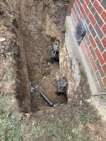 Our team inspected the foundation and determined that the underlying soil had settled, causing the chimney footing to shift. To permanently stabilize the structure, we installed two helical piers beneath the chimney foundation. The piers were advanced deep into stable soil, allowing us to lift the chimney back toward its original position and secure it tightly against the home once again.