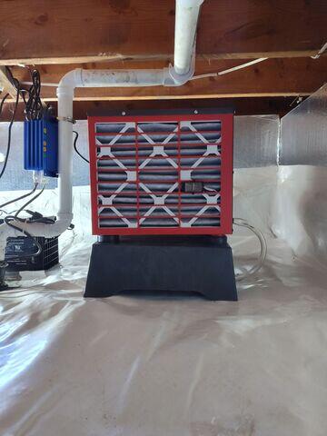 To address air quality, we installed a SaniDry Sedona. This system filters and dries the air, reducing humidity that can lead to mold, odors, and pests. Since the crawl space air mixes with the air inside the home, keeping it dry and clean improves the overall air quality throughout the house.